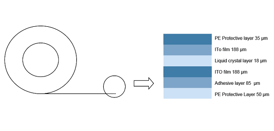 La película inteligente DLC (cristal líquido tintado) adopta una estructura laminada multicapa. La capa central está compuesta por un material de cristal líquido especialmente tintado, que permite cambiar entre una transparencia gris claro y una opacidad negro intenso. Esta capa se intercala entre dos películas conductoras transparentes (ITO) y, a continuación, se sella entre capas protectoras de PET. Toda la estructura se lamina con precisión utilizando un adhesivo de alto rendimiento, lo que garantiza la estabilidad, un rendimiento óptico uniforme y la durabilidad. La película inteligente DLC está diseñada para aplicaciones de sombreado inteligente y privacidad, y ofrece atenuación gradual, protección contra los rayos UV y un control solar eficiente.